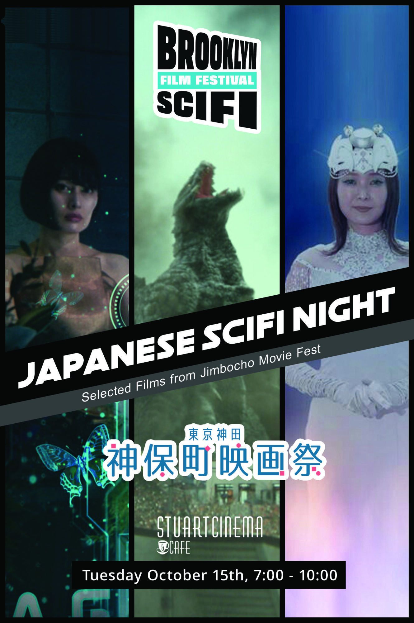The Brooklyn SciFi Film Festival presents an evening of selected SciFi short films from the legendary Jimbocho Movie Fest in Tokyo, Japan, at Stuart Cinema on Tuesday, October 15th, to be followed by a filmmaker panel moderated by Yasu Suzuki of the New York Japan Cinema Fest. As part of the evening, Brooklyn SciFi will recognize a jury selected best Japanese SciFi film from Jimbocho. Attendees will receive a free Godzilla Eras Tour poster as part of this year’s 70th Anniversary of Godzilla celebration. Tickets available at Eventbrite.